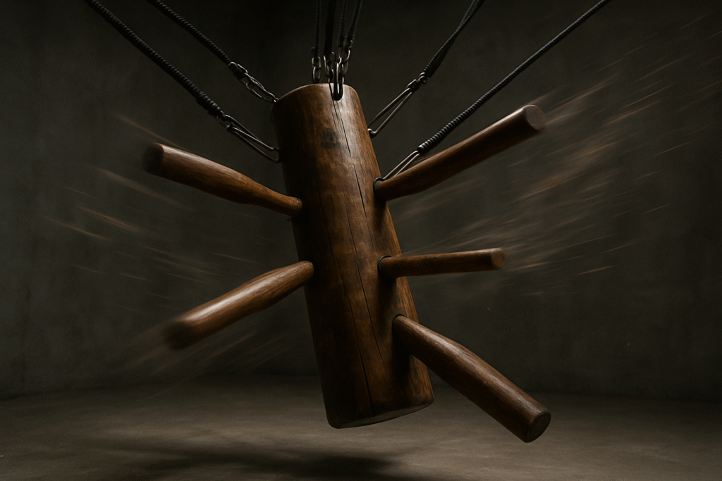 The traditional Wing Chun wooden dummy, the Mook Yan Jong, is a masterpiece of martial arts engineering, designed to teach structure, angle, and simultaneous attack and defense.